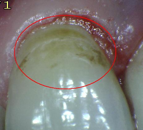 • En la imagen derecha observamos un código 1 de ICDAS (mancha blanca/marrón) observado en seco.