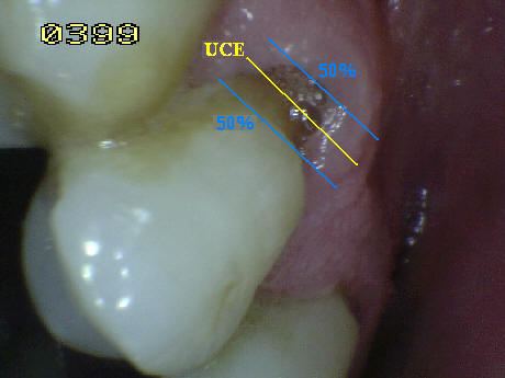 menos 1 mm o más allá del limite de la unión cemento esmalte (UCE),