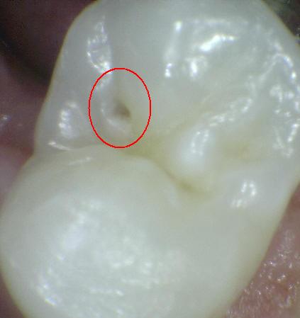 largo de la fosa o fisura sospechoso y una cavidad de la dentina se