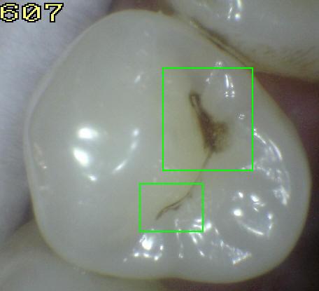 de caries no es consistente con la de las fosas y fisuras teñidas como