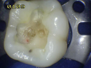 En mesial se ha eliminado toda la caries, se lava con