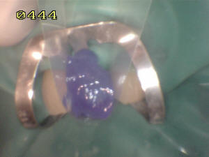 clamp cervical. se utiliza dique de goma oscura para mantener un