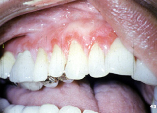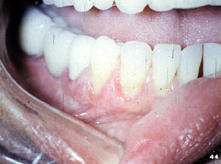 otra vista del eritema de la encía del liquen plano erosivo. |