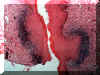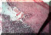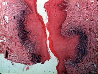 Hay a veces degeneración hidrópica del epitelio en que las células inflamatorias pueden extenderse.