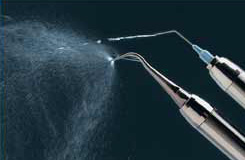"spray" alrededor del instrumento.
