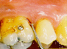 diente y la encía, lo más paralelamente posible a la superficie de la raíz.