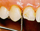 de color o marca, al nivel del margen gingival. El extremo de la sonda