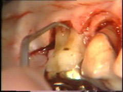 defectos óseos (cráter) es eliminado. En la superficie bucal del segundo premolar hay
