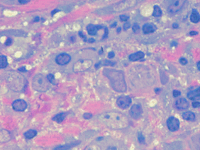La distribución muy irregular de las  bacterias subgingivales  causa una respuesta histológica de los tejidos blandos. Esta respuesta histológica del huésped muestra variaciones similares al modelo de destrucción  y a pesar de los esfuerzos de la investigación no ha sido posible identificar el  modelo de respuesta histológica que caracterizaría una lesión,  que desarrolle la   progresión a enfermedad periodontal.