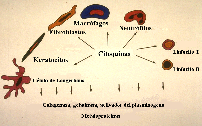 El epitelio de unión y el epitelio de la bolsa son muy permeables  a moléculas grandes que activan una reacción inmune en el tejido conjuntivo gingival . En las fases tempranas en  esta reacción predominan los linfocitos para luego aparecer las células plasmáticas  y en forma tardía predomina la infiltración inmune. La reacción inmune genera los mediadores que refuerzan la inflamación y el daño al tejido. En particular la producción de citoquinas  es prominente. Estas substancias son moléculas muy  potentes que activan varios  eventos perjudiciales  en el tejido conjuntivo.