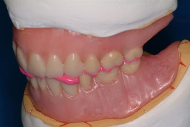5. Estos registros intraoral derecho e izquierdo, debe ser  remitido al técnico dental para programar el articulador y luego realizar el ajuste oclusal  de los dientes  en excéntrica