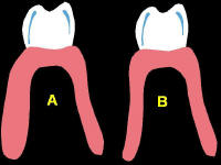 Si es cóncava como en la figura B los detritus alimenticios quedaran confinados en la zona vestibular, dado que la lengua no alcanza esa zona para realizar la auto limpieza.