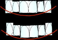 H- Covexidad de la encía protética: El contorno de la encía vestibular protética debe ser convexa como lo muestra la figura A