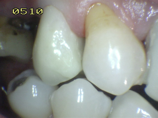 En la imagen superior se ha realizado un tratamiento de conducto y un perno muñón colado. En la siguiente se observa una corona provisoria realizada en acrílico de termocurado.