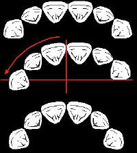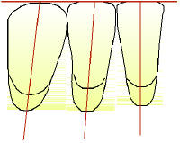 En el central el eje del diente debe formar una