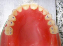 puntos de contacto en cúspides palatinas y fosas de los