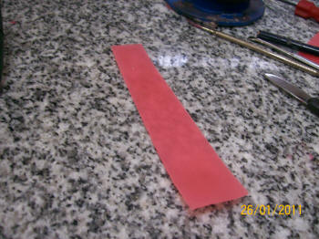 Una hoja de cera rosa de 4 cm. de ancho, para comenzar a modelar la guarda.