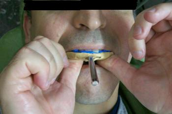 solicitarle al paciente que muerda suavemente, hasta presionar 1 mm de