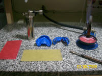 Una base de acrílico del tamaño de una mufla de aluminio de las que se usan para reproducir modelos con hidrocoloide reversible. Una lámina de aluminio de unos 35 cm. de largo y 0,5 mm. de espesor. La lámina de acrílico tiene que tener un espesor de 1 cm. Se utiliza la base de la mufla para reproducciones de modelos  con hidrocolide, como patrón de construcción.