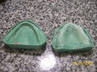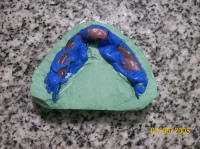 Modelo superior con su zócalo.  Retiro de la cera pegajosa para verificar el espesor del zócalo,  que no debe ser menor a 5 mm. Modelos de trabajo terminados.