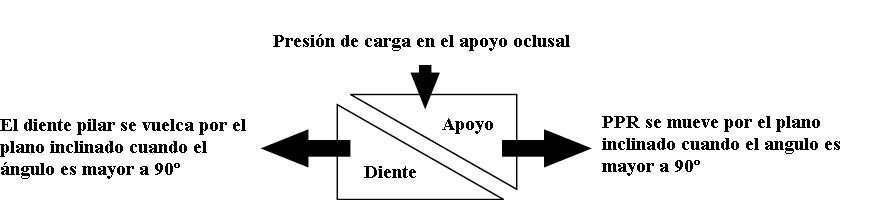 | Si el ángulo es mayor a 90º ocurre un desplazamiento de la prótesis