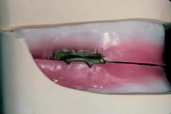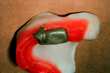 ó 4 mm. detrás de las marcas caninas en el rodete superior,