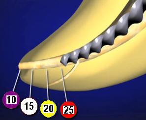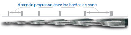 2. y un  (Pich) distancia progresiva entre los bordes de corte,  para poder evacuar la limadura de dentina.