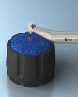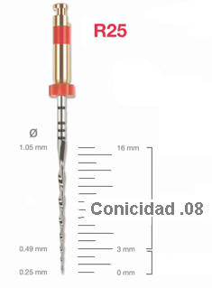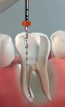InstrumentosEl sistema ofrece tres tamaños de instrumentos para la preparación según los tipos de conductos radiculares. Los instrumentos están listos para su utilización en un blíster estéril y luego de su utilización simplemente se desechan. El sistema imita el movimiento manual de la endodoncia, con un ciclo que gira una vuelta a favor de las manecillas del reloj, se detiene y retrocede un cuarto de vuelta, y nuevamente comienza un nuevo ciclo. Mientras que el operador genera un movimiento de picoteo de unos 3 mm en forma manual con el contrángulo. Para un secado del conducto eficiente existen puntas de papel estériles, correspondientes a la forma de la preparación, así como guttapercha para procedimientos de obturación en frío y en caliente. |