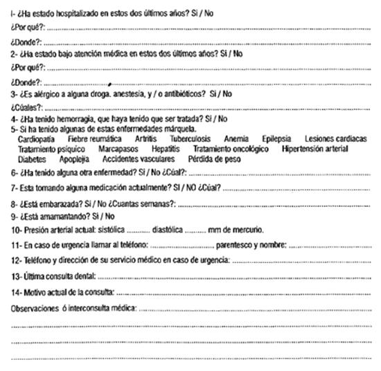 ficha dental para el paciente ambulatorio debe tener todos estos datos