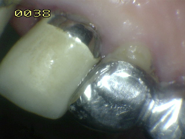 metal mostrando el cemento de resina con la interfaz