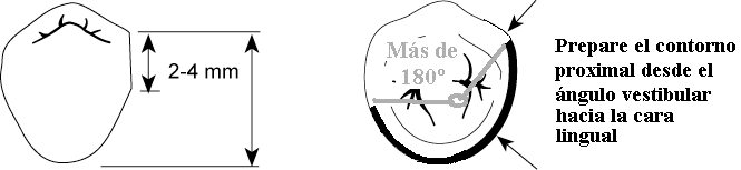 piso del apoyo oclusal y el reborde marginal debe ser menor a