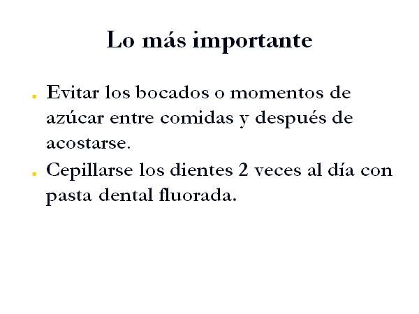 El personal de salud dental puede analizar la situación discutiendo los patrones dietéticos, identificando productos que pueden ser eliminados, substituidos ó reducidos.